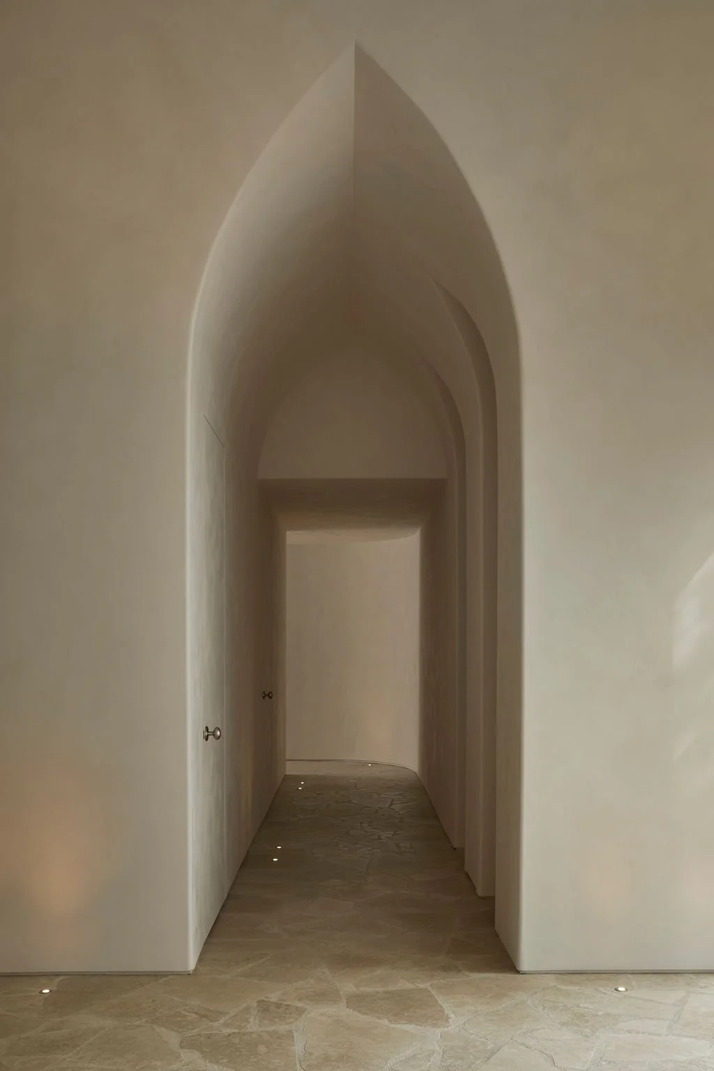 strong monolithic forms of the ecclesiastical inpsired architecture, with its formal symmertry of space planning, tall gothic windows, soft archways and impressive vaulted ceilings, creates an ethereal atmosphere for celebratory gatherings